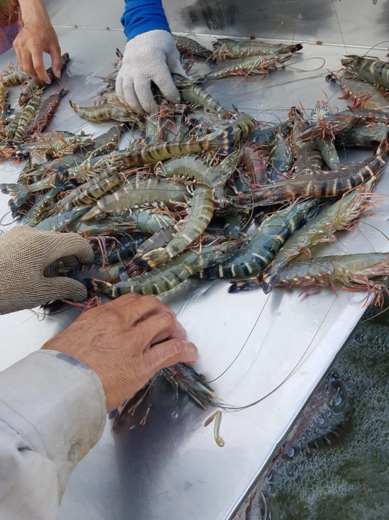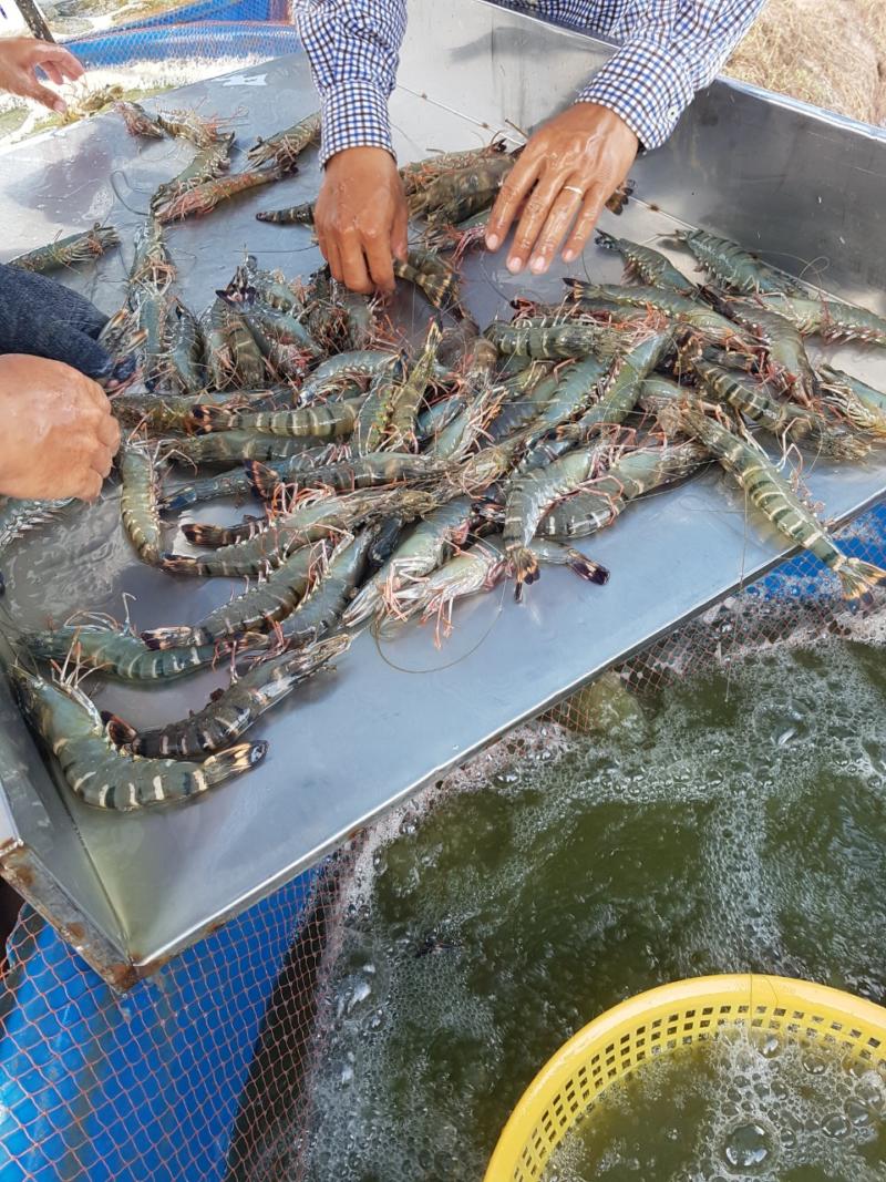 Tôm sú gia hóa của 79 khách thả nuôi công nghiệp sau 5 – 6 tháng có thể về size 10 – 15 con/kg